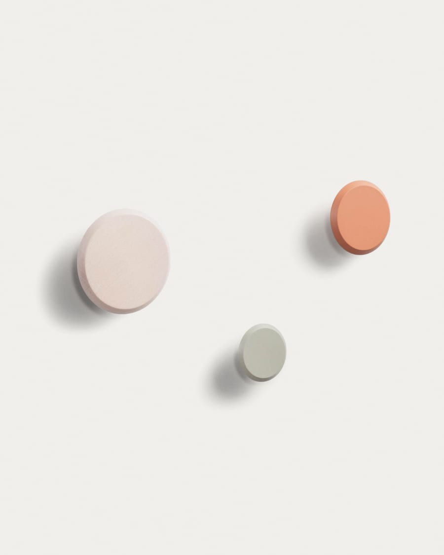 Set Nadua di 3 appendiabiti in legno massello di faggio finitura naturale, arancio e beige