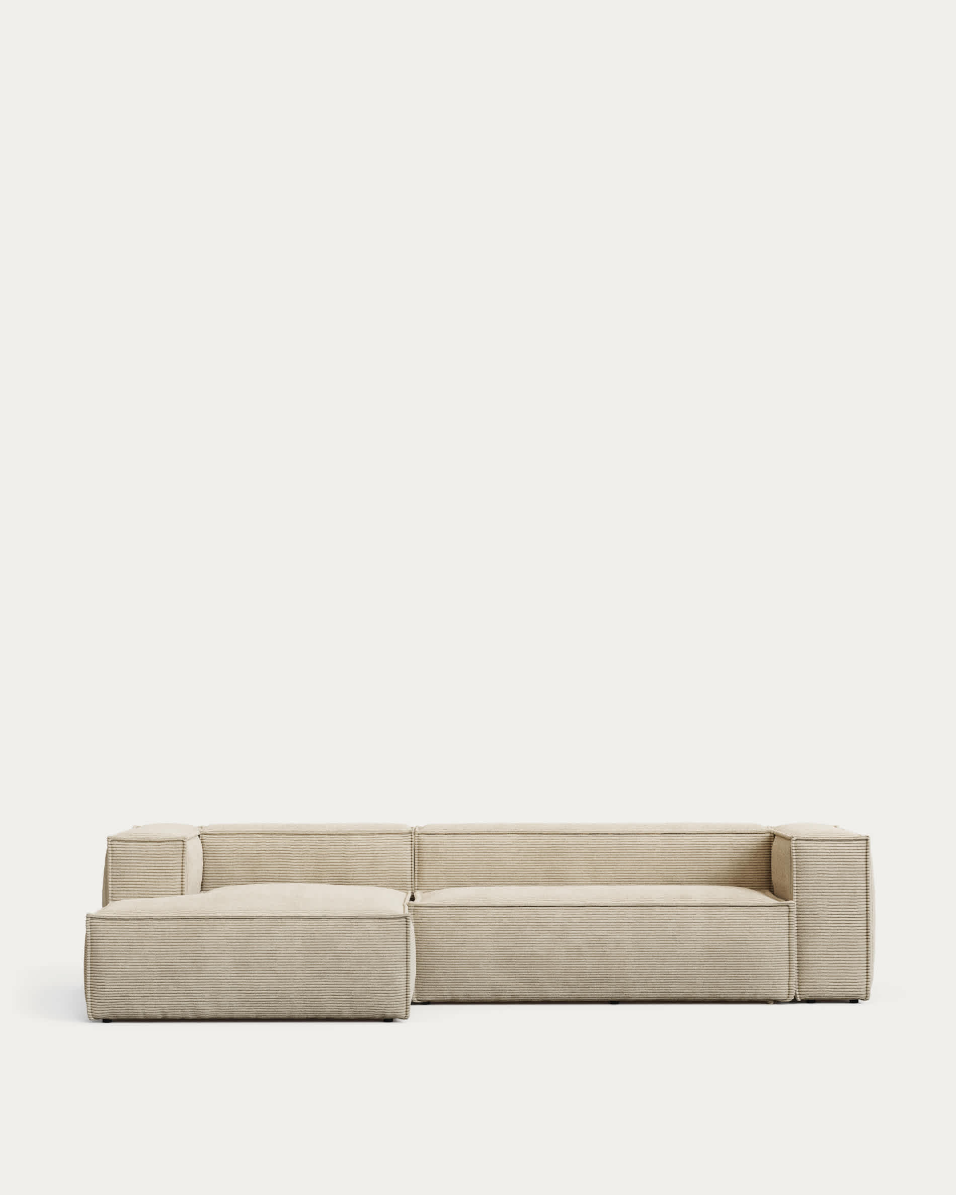 Divano Blok 3 posti chaise longue sinistra in velluto a coste spesso écru 300 cm