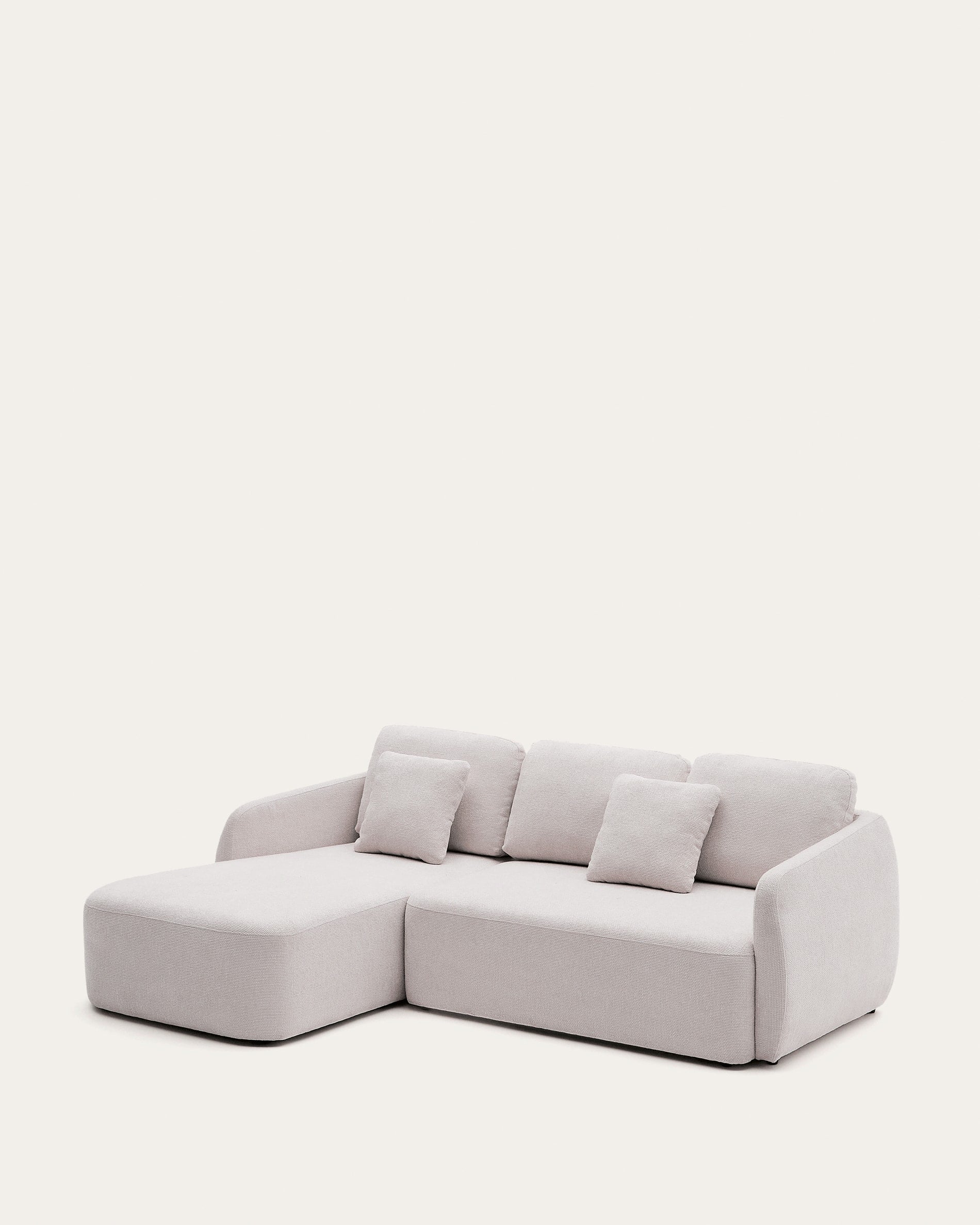 Il divano letto Laira si distingue per il suo rivestimento in chenille a trama larga di alta qualità , con un tocco molto morbido e resistente all'abrasione. Il sistema di apertura Y-open permette di trasformare facilmente e rapidamente il divano in un comodo letto da 150 x 230 cm nella sua parte più ampia, grazie al meccanismo di apertura sincronizzata. Inoltre, una volta aperto, può essere utilizzato come chaise longue continua. La schiuma a densità medio-rigida di 28 kg/m3 offre una seduta medio-rigida, garantendo un equilibrio tra comfort e supporto. I cuscini dello schienale sono imbottiti con fibra e schiuma sminuzzata, per un comfort avvolgente. Struttura interna in legno massello di pino e multistrato. Il legno massello di pino è certificato FSC™ 100% con catena di custodia e un modello di gestione forestale responsabile, mentre il multistrato è certificato FSC Mix Credit, composto da una miscela di materiali provenienti da foreste certificate FSC e legno controllato FSC.