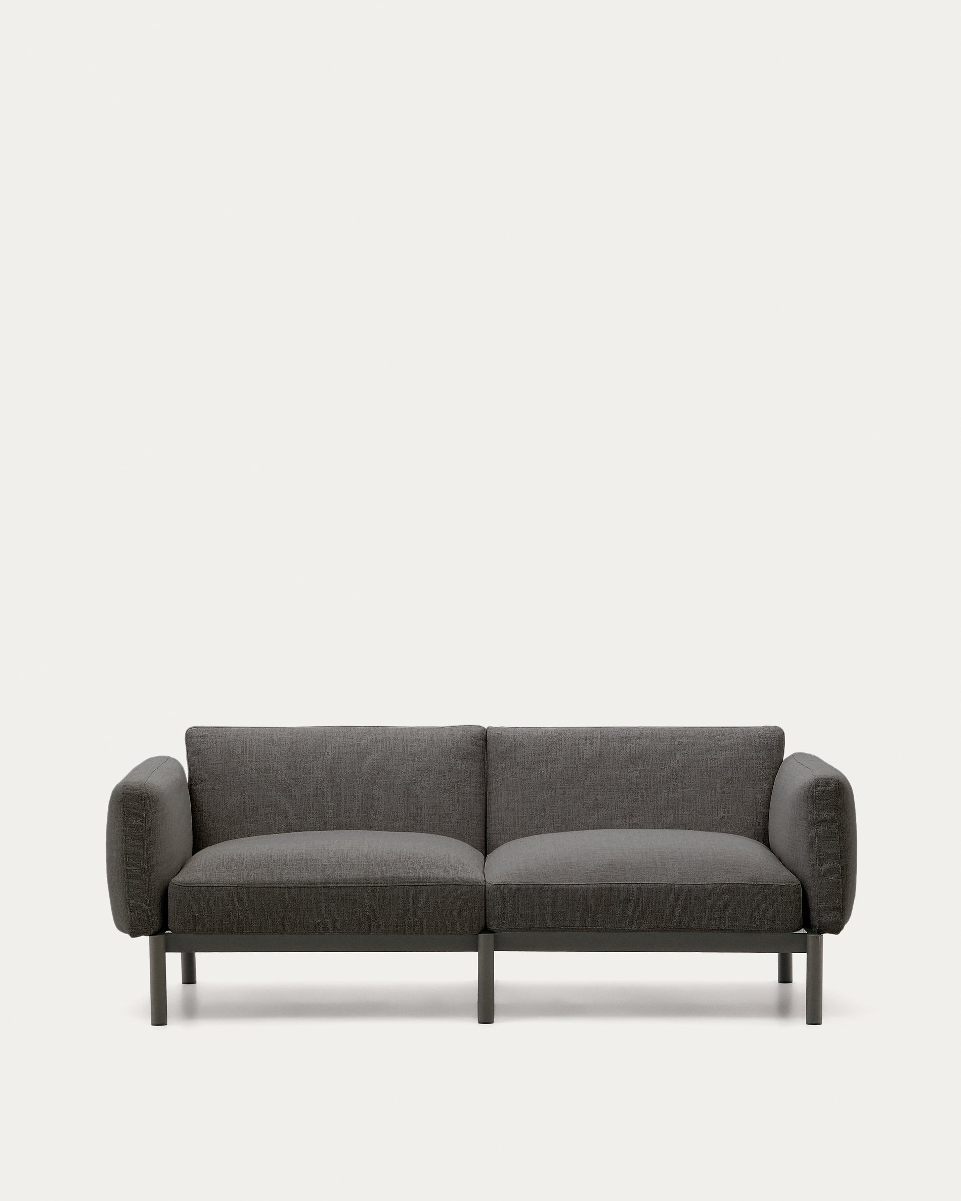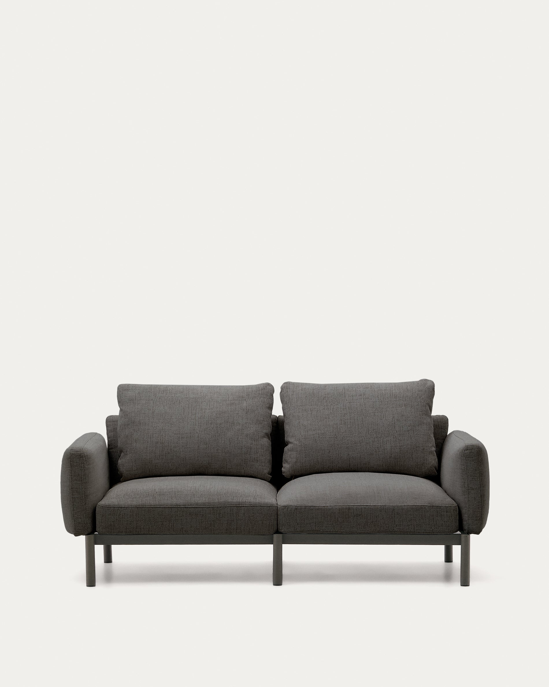 Divano modulare per esterni Sorells 2 posti con tappezzeria grigio scuro e struttura in alluminio con finitura grigio.