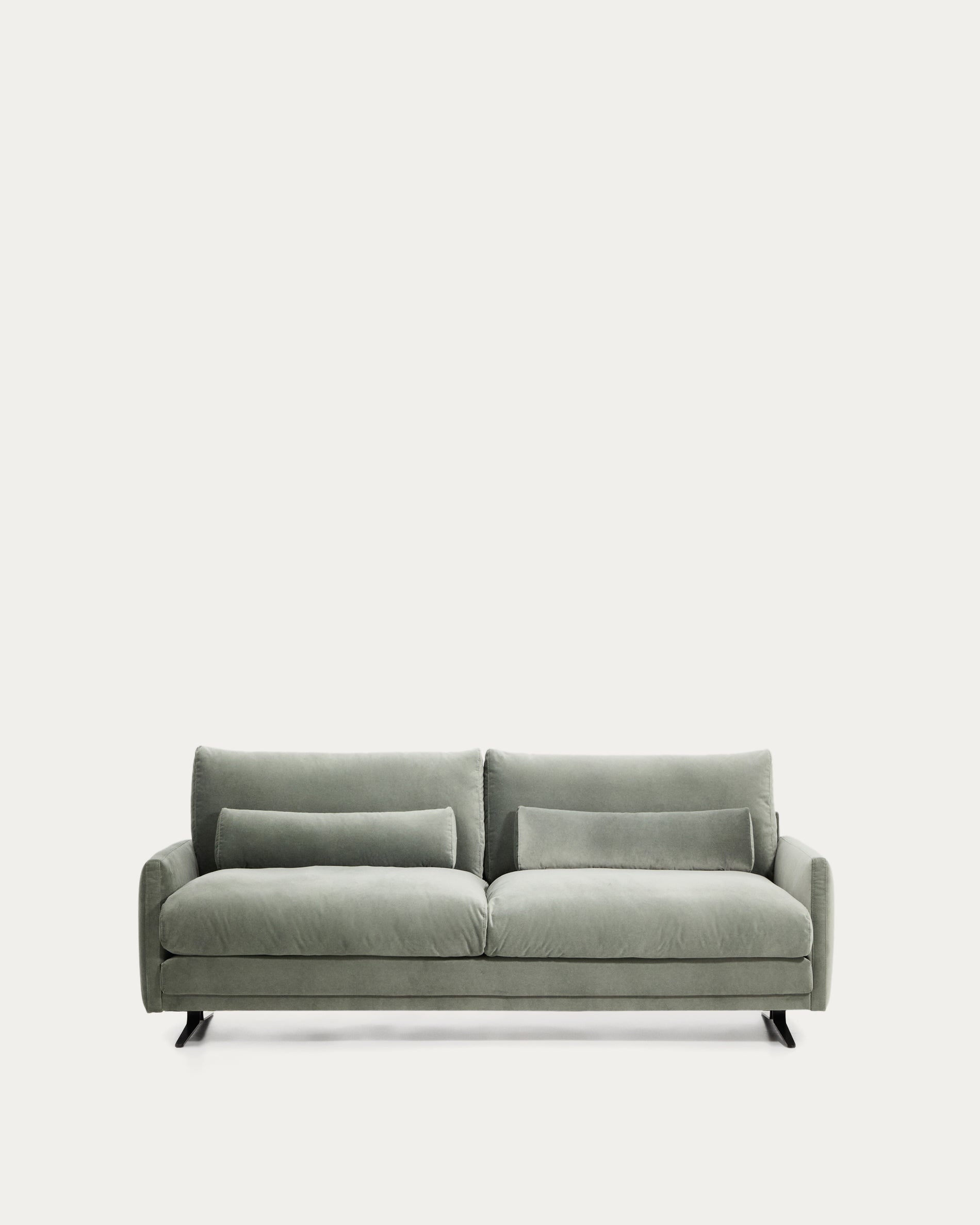 Il divano Veliro unisce l'eleganza senza tempo delle linee della metà del XX secolo con nuove proporzioni, progettate per offrire il massimo comfort in qualsiasi ambiente. Il rivestimento in velluto effetto slavato con finitura opaca, contenente il 20% di cotone, è morbido e altamente resistente all'abrasione e alla luce, ed è lavabile in lavatrice con un ciclo delicato. Il tessuto proviene da un fornitore certificato secondo lo standard OEKO-TEX® STANDARD 100 per una produzione ecologicamente sicura e rispettosa dell'ambiente. Ha una seduta morbida grazie alla combinazione di schiume Air System da 28 kg/m³, ad alta durabilità e alta capacità di recupero, fibre ad effetto piuma per un effetto avvolgente e al sistema di sospensione con cinghie. I cuscini dello schienale e della zona lombare sono imbottiti di fibra con effetto piuma. Inoltre, seduta, schienale e cuscini lombari sono sfoderabili per facilitare la pulizia e la manutenzione. La struttura interna, in legno di pino, è certificata FSC Mix Credit, realizzata con un mix di materiali provenienti da foreste certificate FSC e legno controllato FSC. Le gambe in acciaio, con un'elegante finitura nera opaca microtesturizzata verniciata a polvere, donano stabilità e un tocco contemporaneo all'insieme. Prodotto in Spagna, questo divano è un arredo polivalente, capace di integrarsi facilmente in qualsiasi spazio grazie al suo design equilibrato e alla sua seduta, progettata per offrire un elevato comfort e adattarsi a diversi stili di vita.