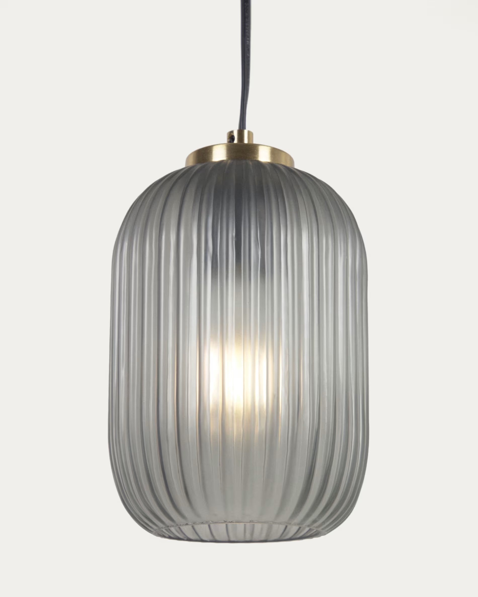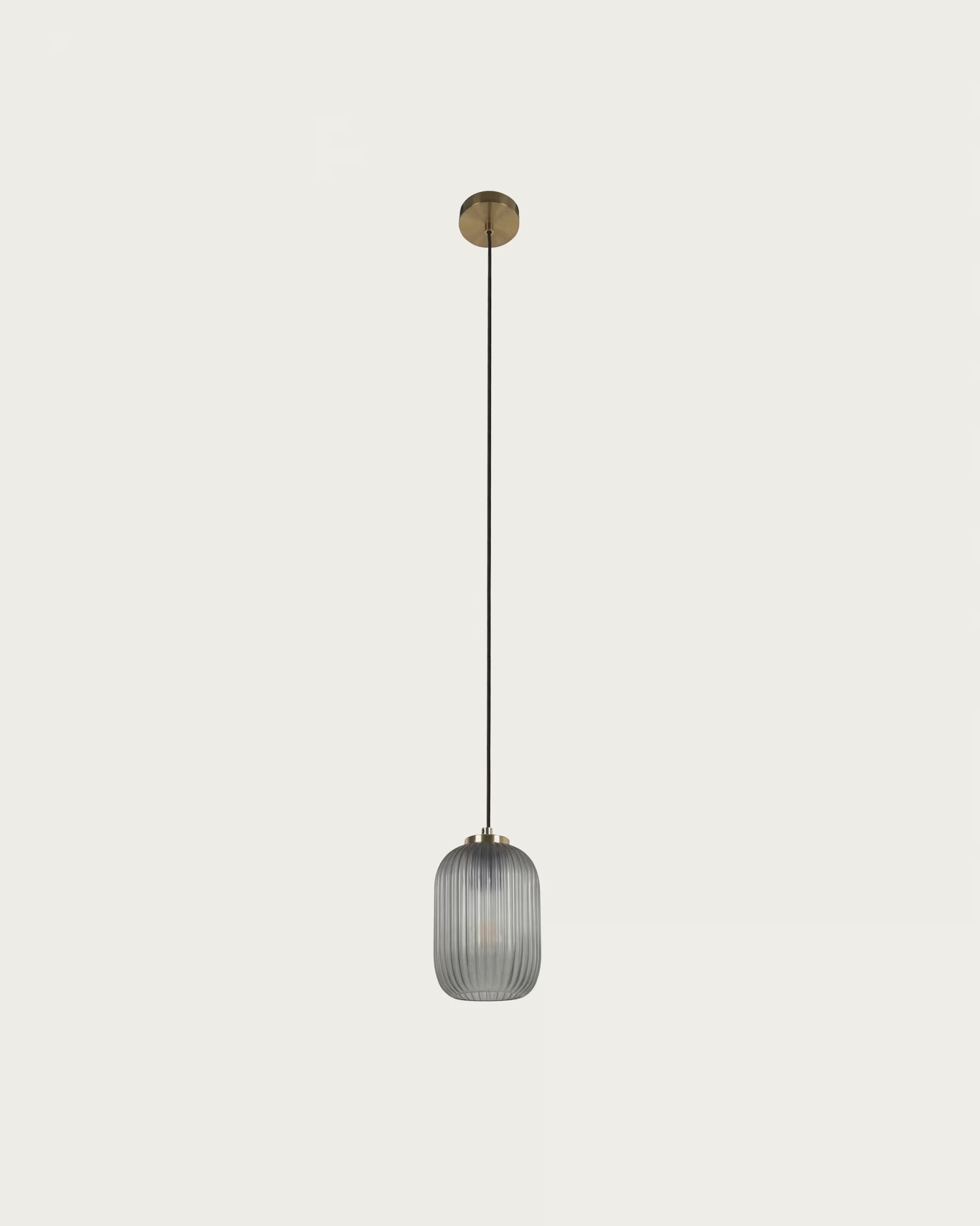 Lampada Hestia in metallo con finitura ottone e vetro grigio