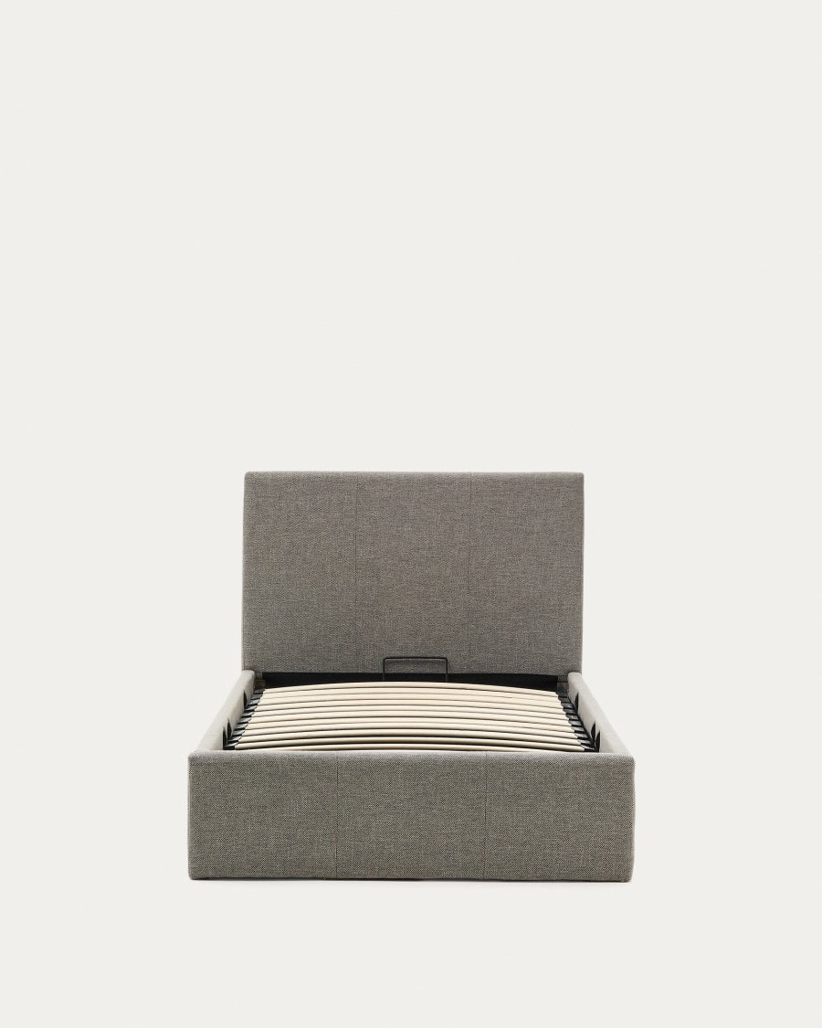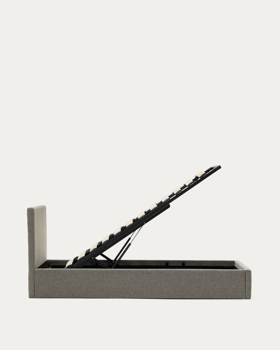 Letto con contenitore Nahiri rivestito grigio per materasso di 90 x 200 cm