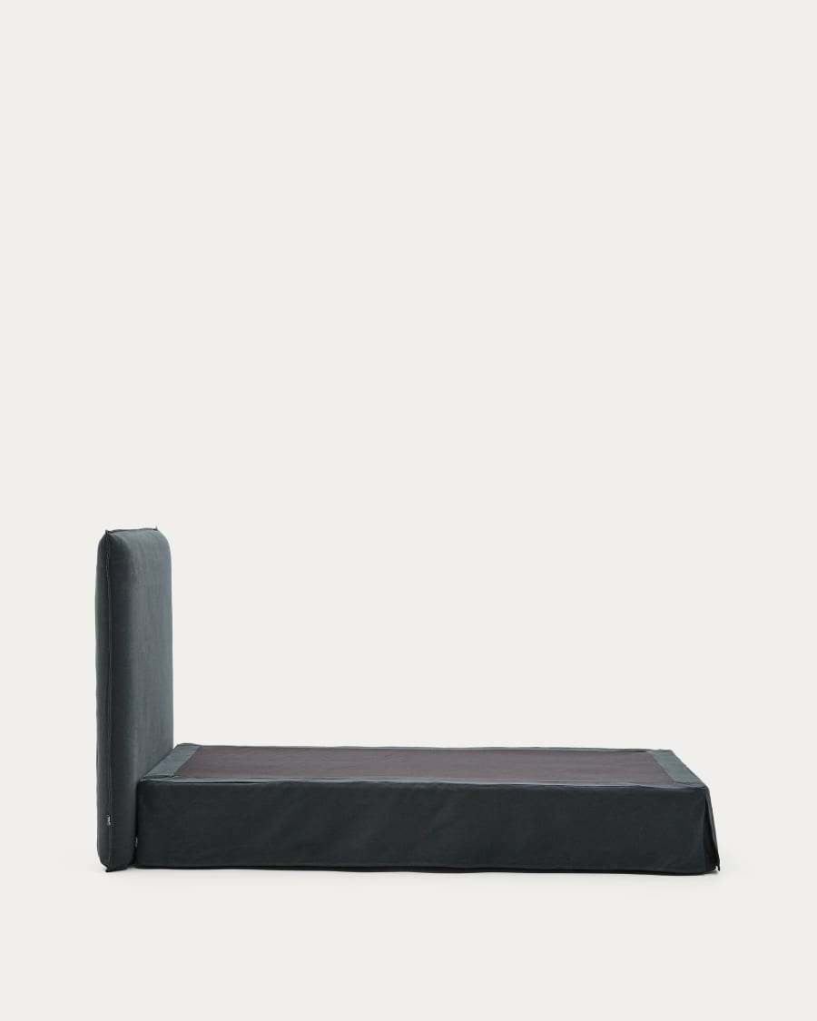 Letto sfoderabile Jaira in lino e cotone grigio antracite per materasso da 90 x 200 cm FSC Mix Credit