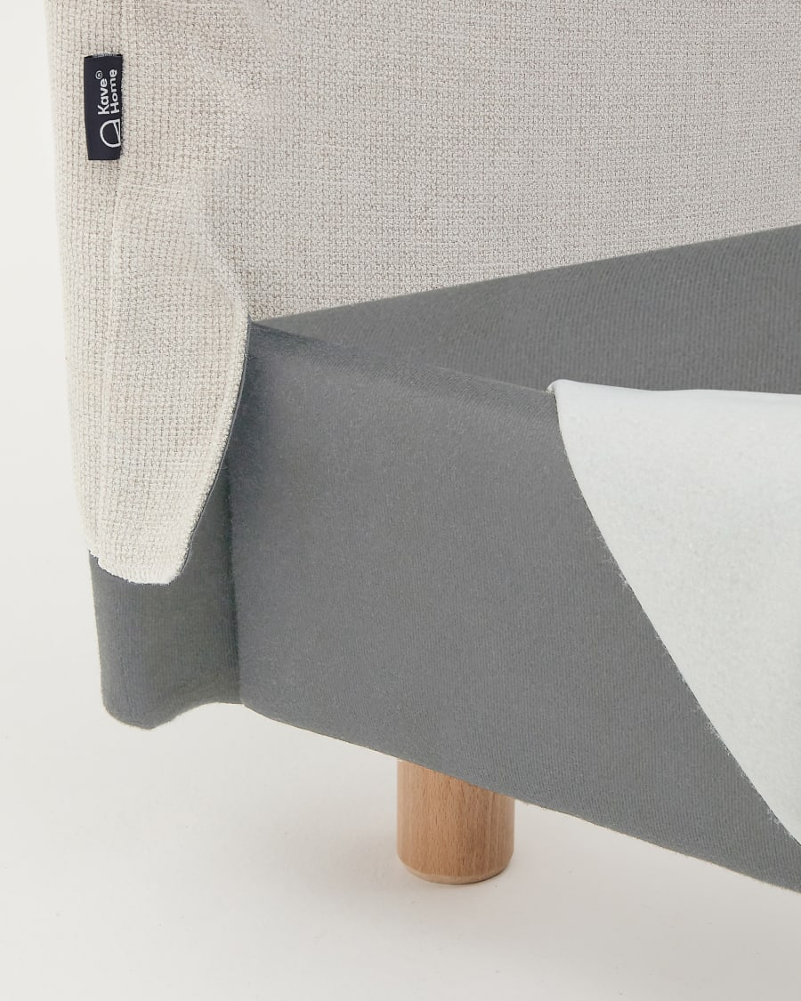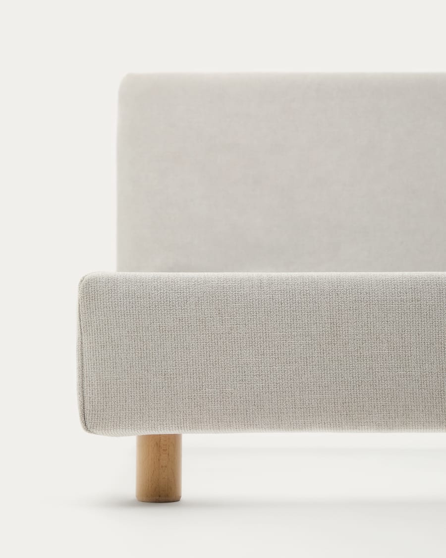 Letto sfoderabile Valma in ciniglia perla con piedi in legno massello di faggio per materasso 90 x 200 cm