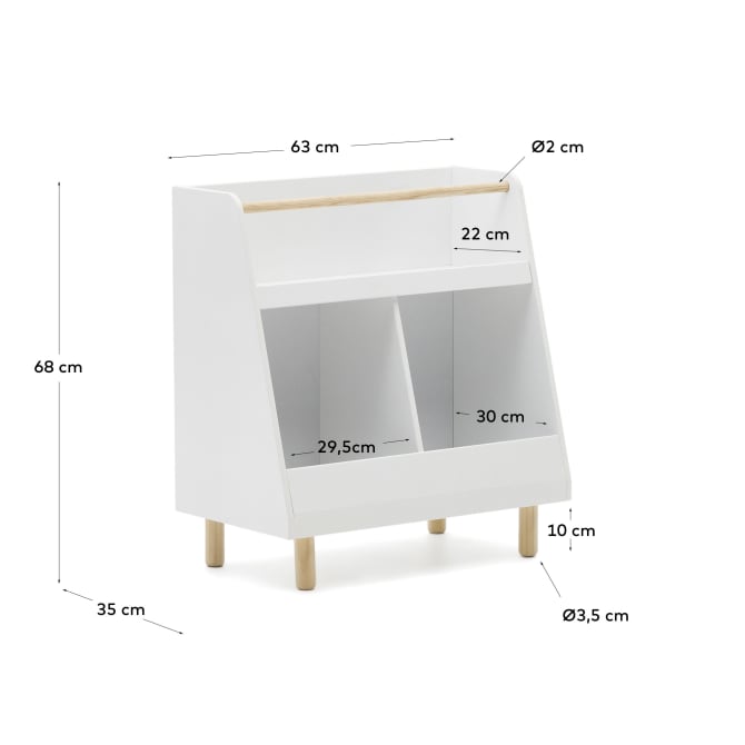 - Libreria in MDF con finitura laccata bianca e gambe in legno massiccio di pino.