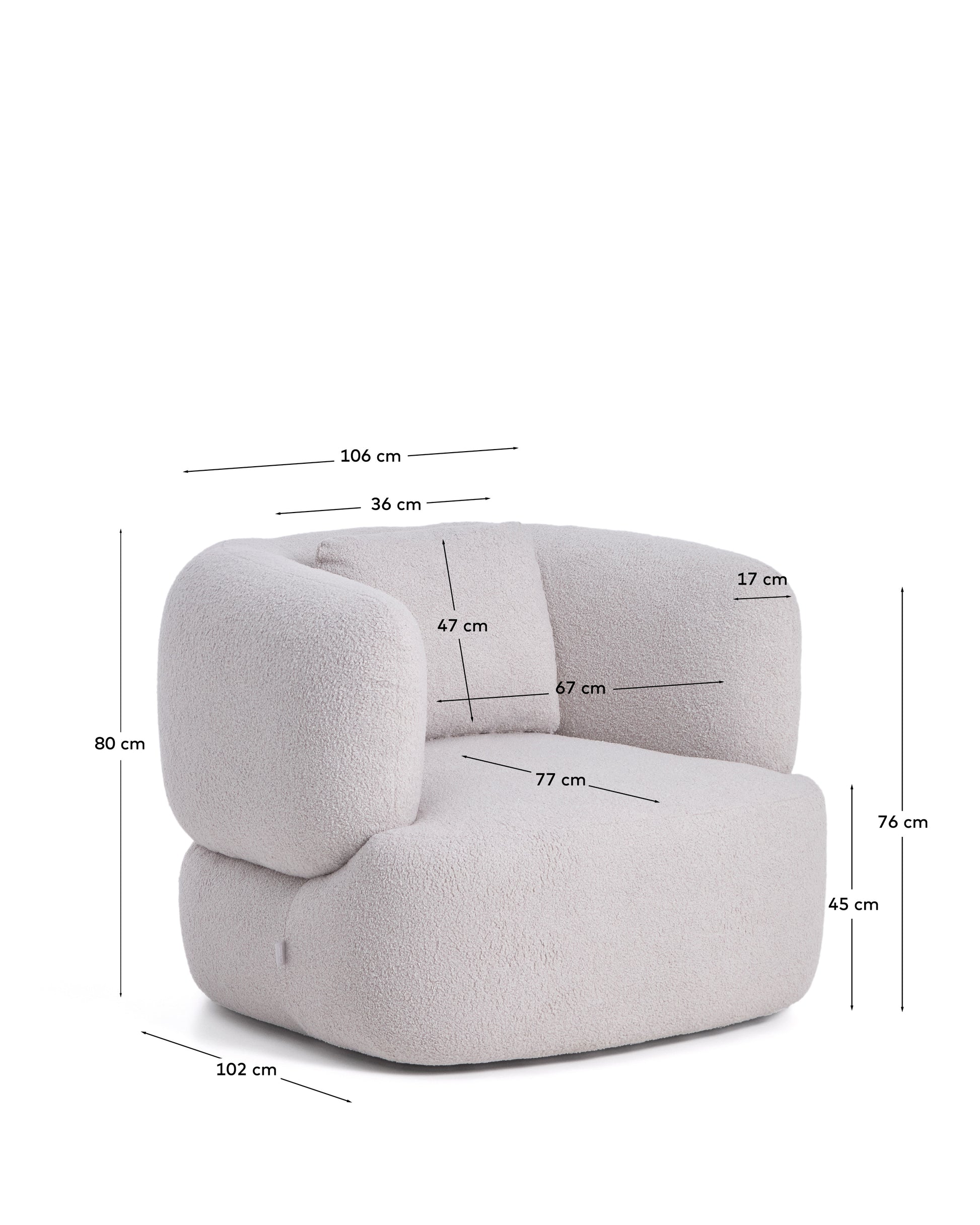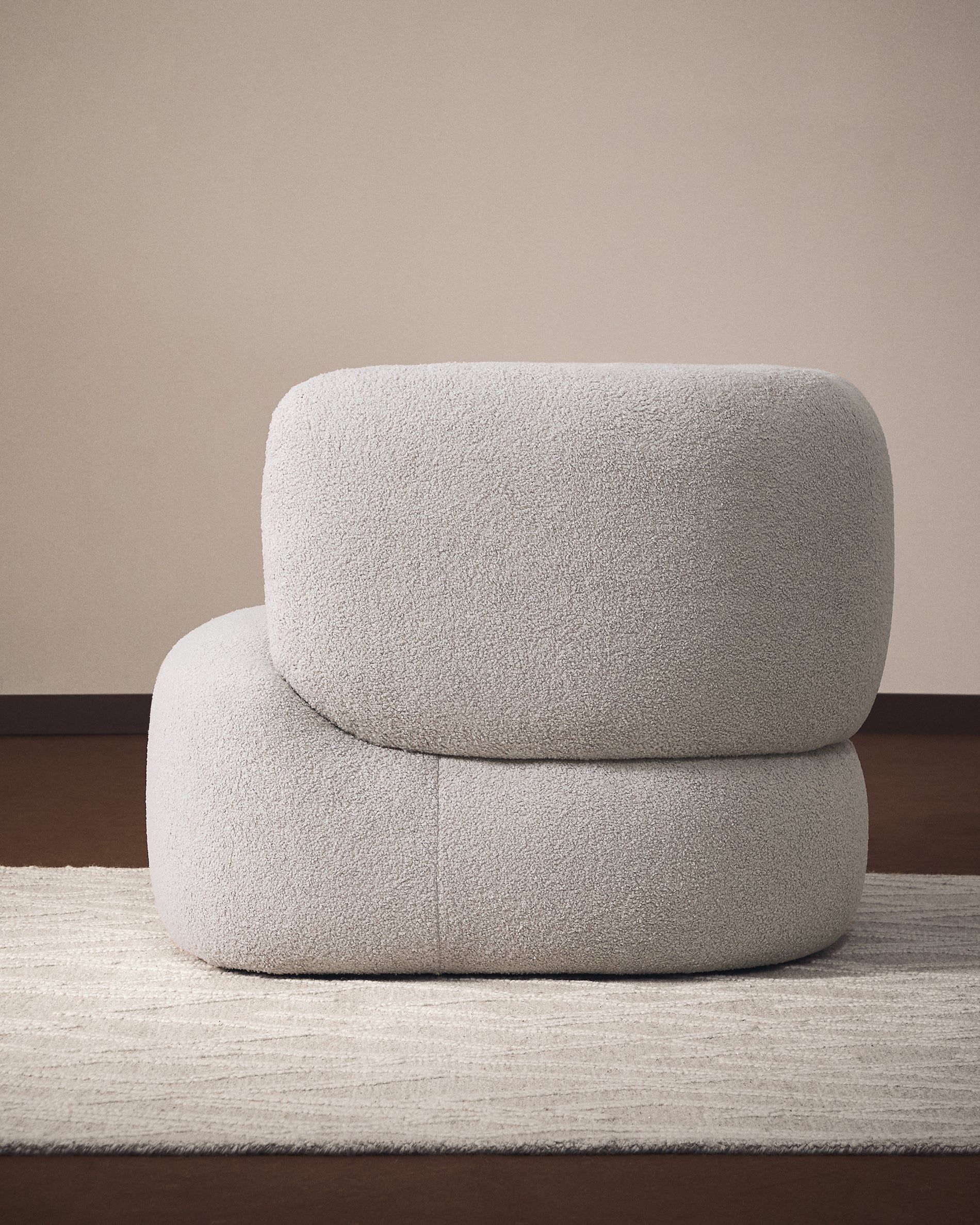 - Poltrona girevole a 360° rivestita in tessuto realizzato al 100% in poliestere riciclato, caldo e morbido al tatto effetto montone. Un metro di rivestimento contiene almeno 32 bottiglie riciclate da 500 ml.
