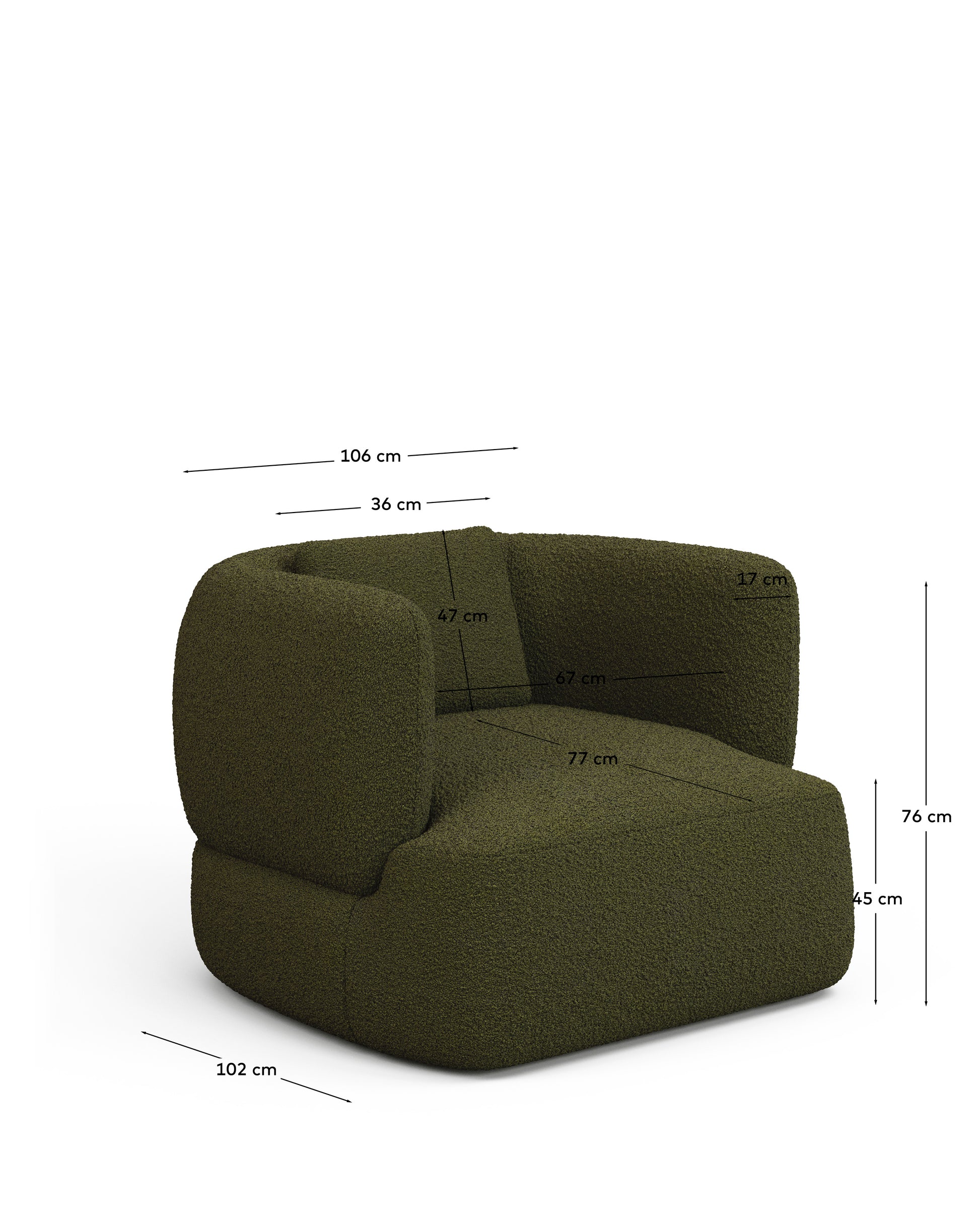 - Poltrona girevole a 360° rivestita in tessuto realizzato al 100% in poliestere riciclato, caldo e morbido al tatto effetto montone. Un metro di rivestimento contiene almeno 32 bottiglie riciclate da 500 ml.