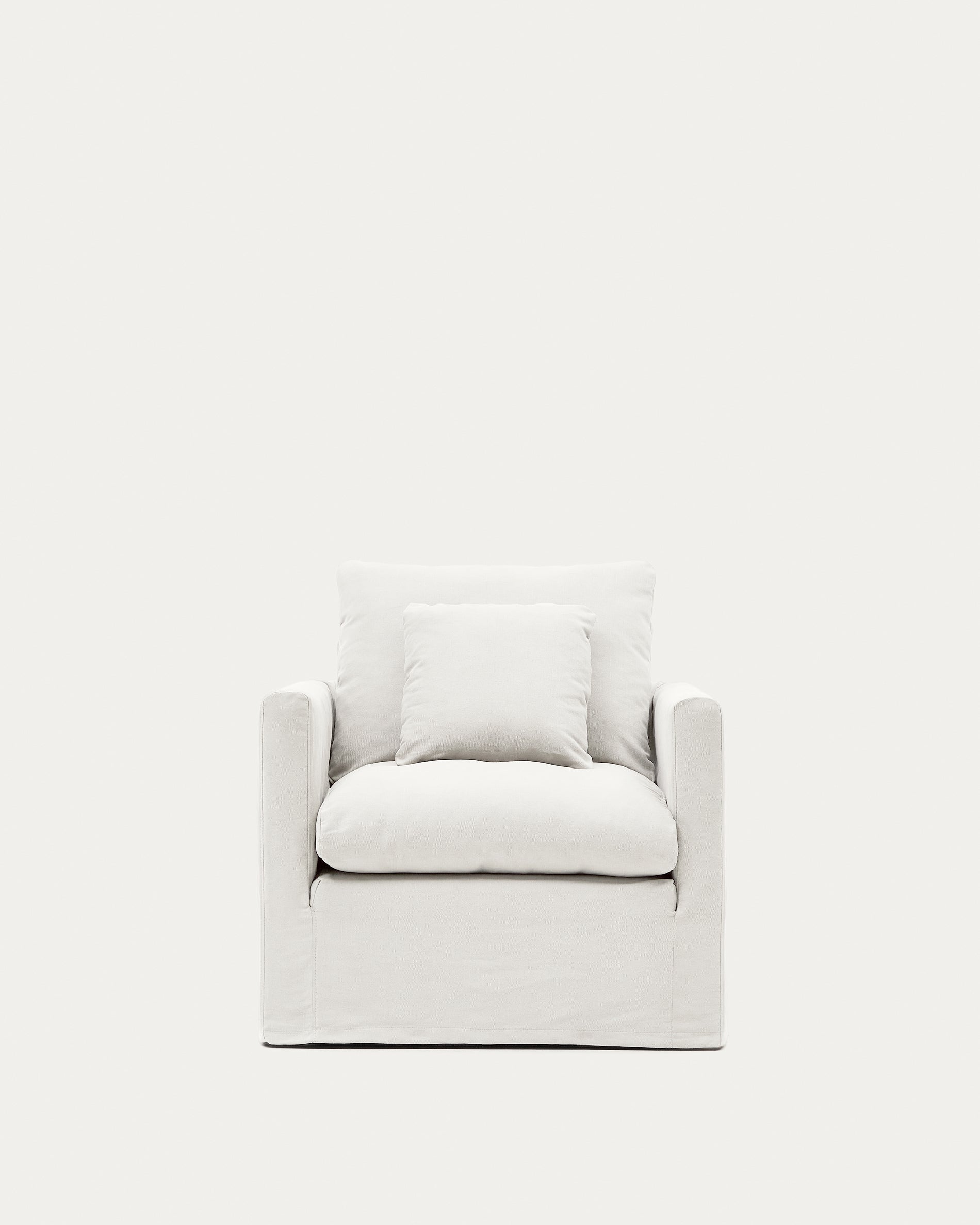 Poltrona sfoderabile Nora con cuscino in lino e cotone écru 92 cm