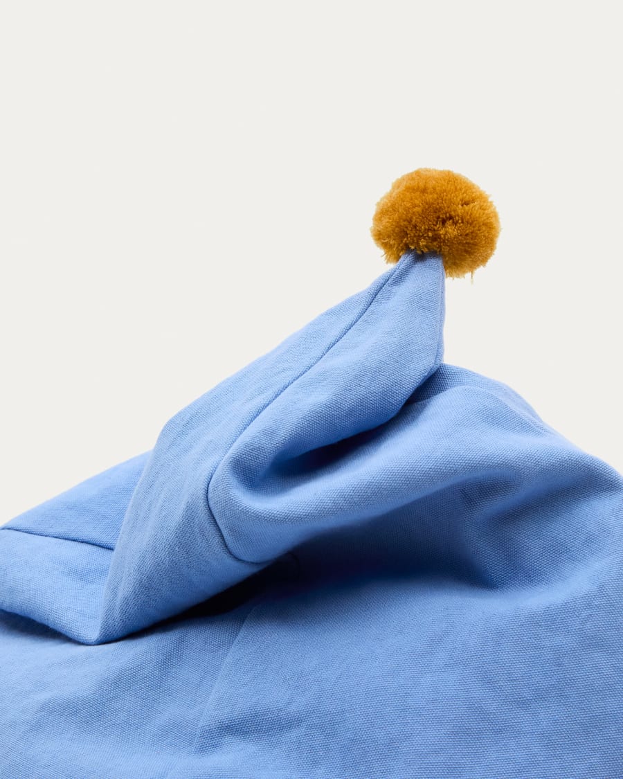 Pouf Olvi di cotone blu con nappa mostarda Ø 60 cm