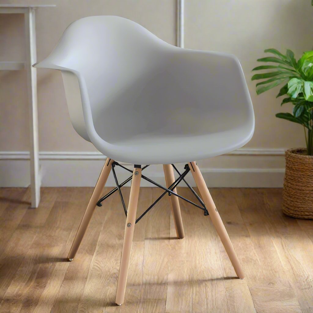 Sedia Faye con seduta in ABS colore grigio, gambe in legno