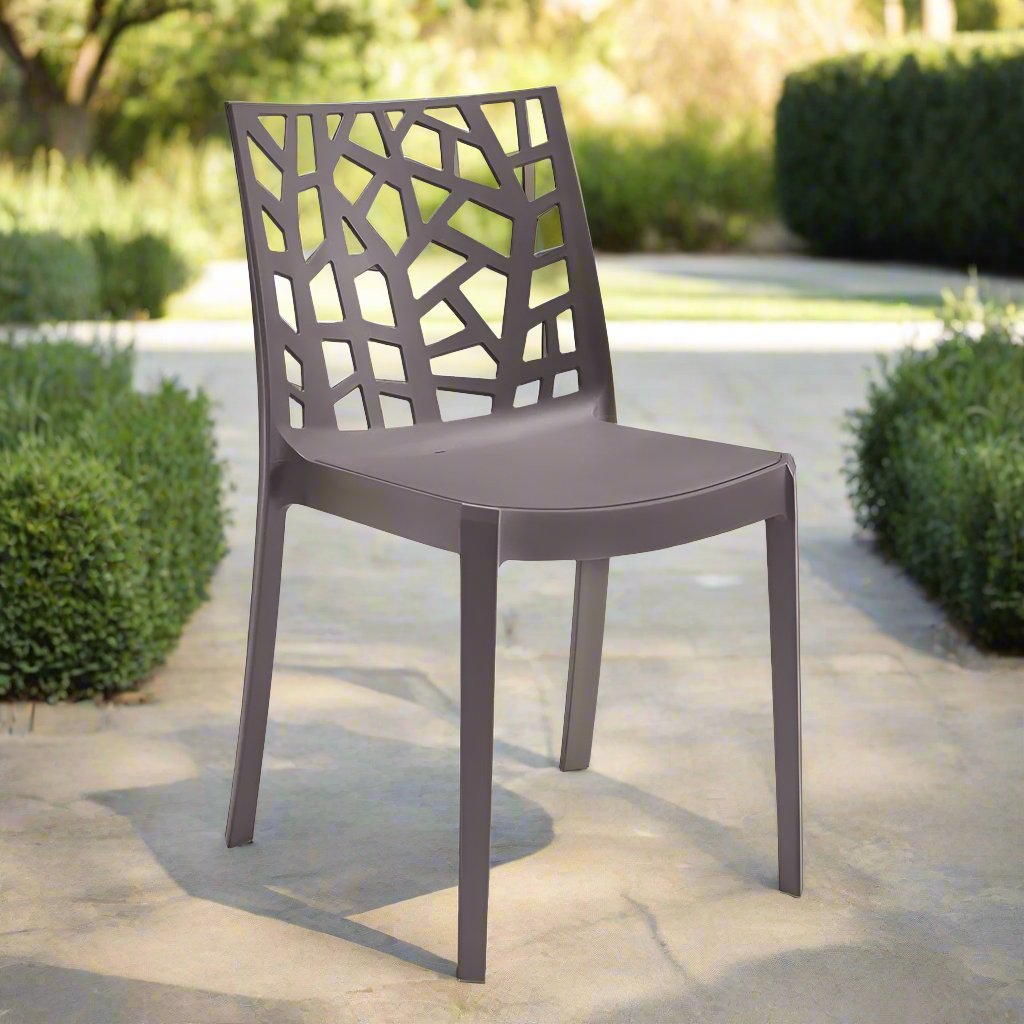 La sedia London è robusta e funzionale, con uno schienale davvero originale. È perfetta per ogni stile di arredamento, sia interno che outdoor. Scegli tra tre colori raffinati e neutri per abbinarla al tuo progetto moderno e ricercato, sia per uso privato che professionale. Realizzata in monoblocco di polipropilene rinforzato con fibra di vetro, London offre un'esperienza di seduta accogliente e confortevole. È impilabile e ha piedini antiscivolo.