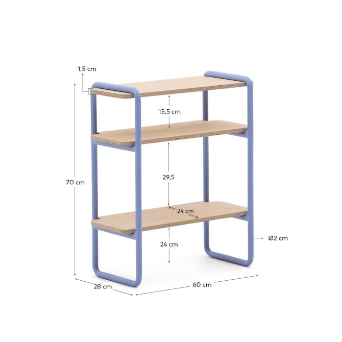 Scaffalatura Tinn in impiallacciatura di frassino e struttura in metallo blu 70 x 60 cm