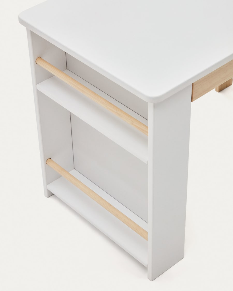 Scrivania Serwa in MDF bianco e gambe e dettagli in legno massiccio di pino