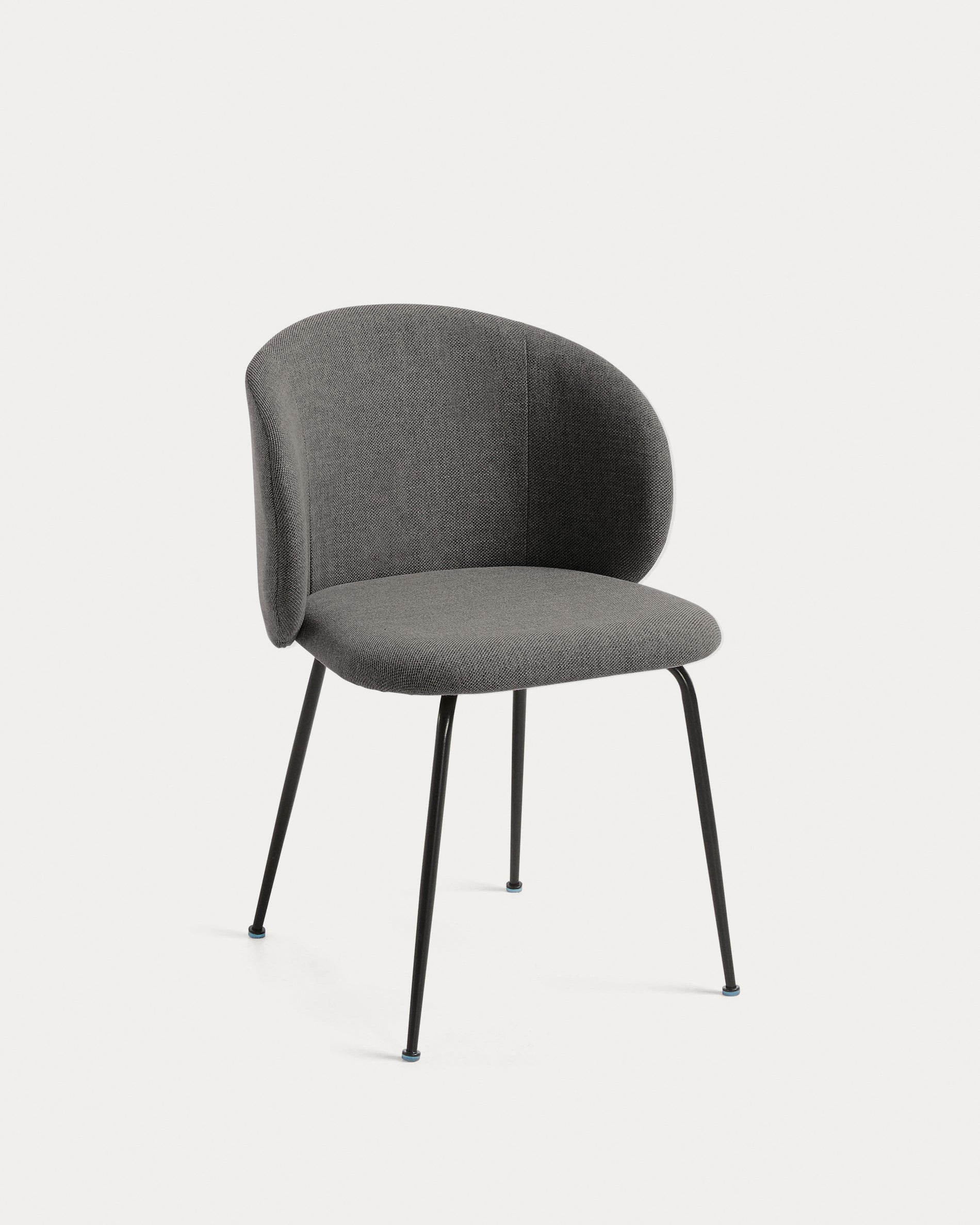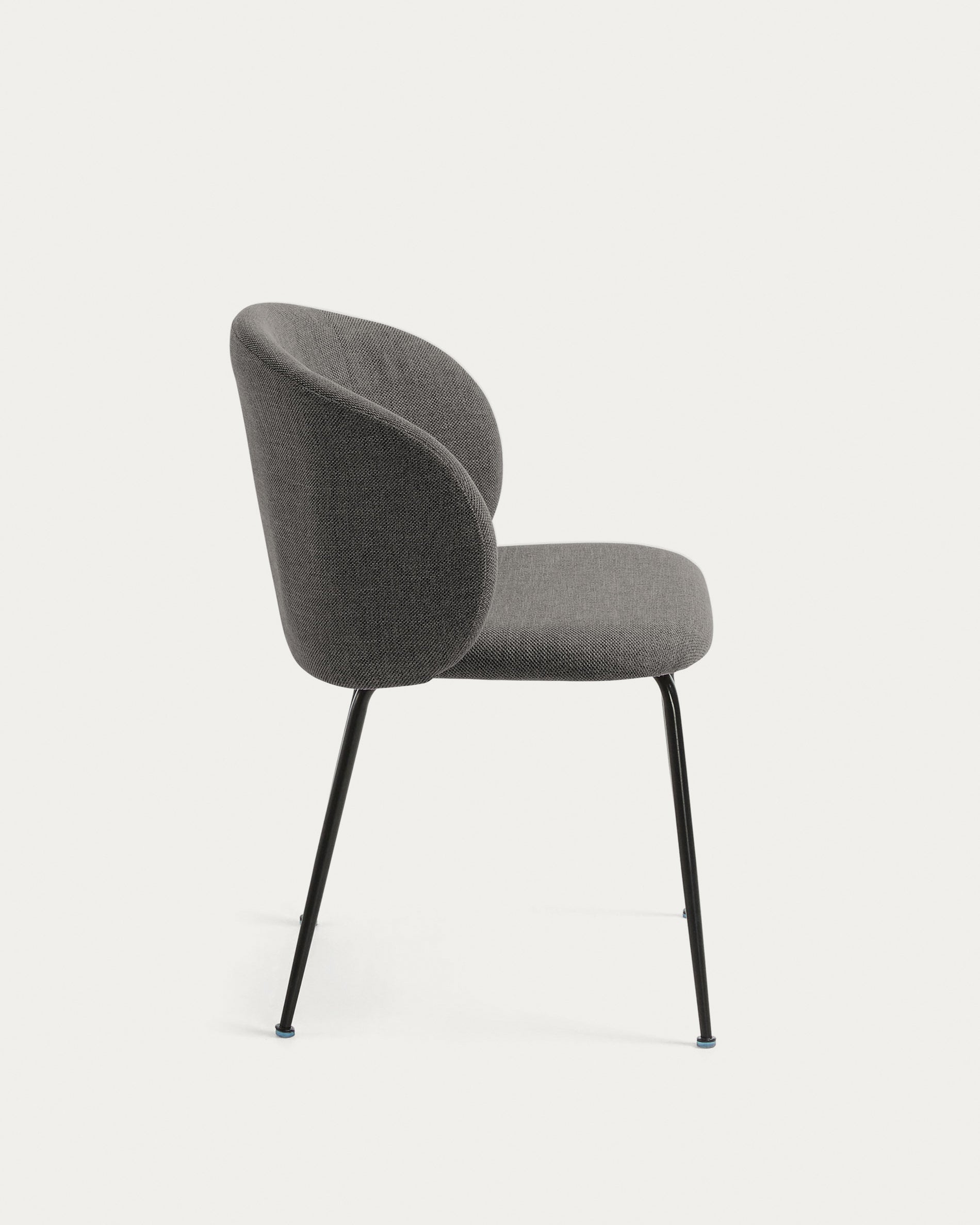 Sedia Minna grigio scuro e gambe in acciaio con finitura nera