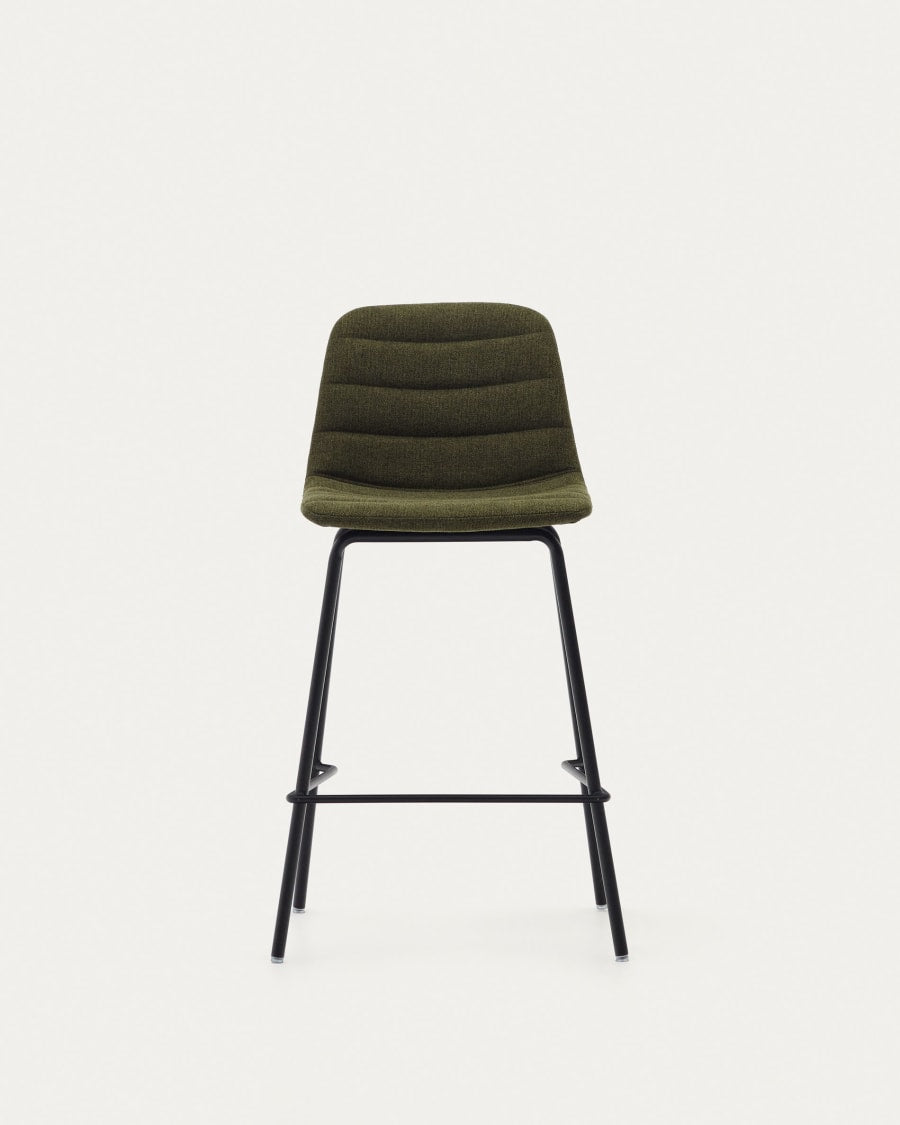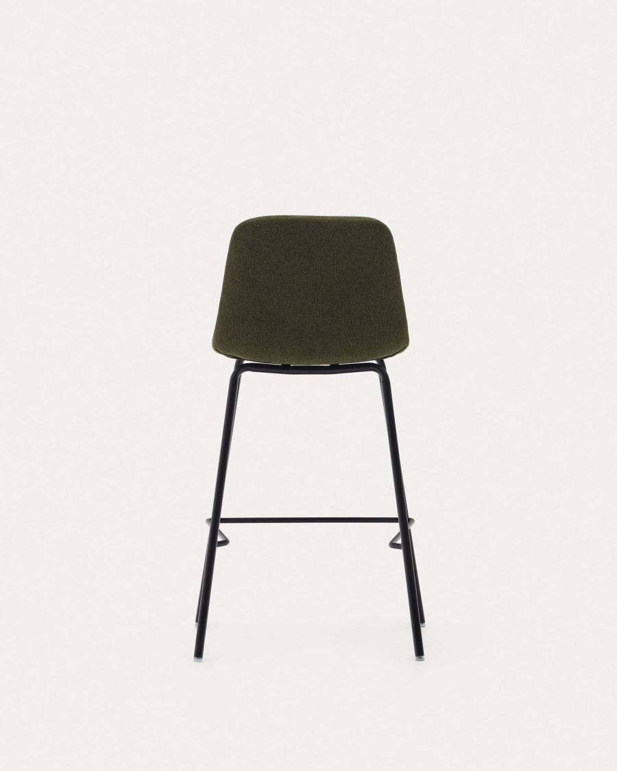 Sgabello Zunilda in ciniglia verde scuro e acciaio con finiture nero opaco, altezza 65 cm