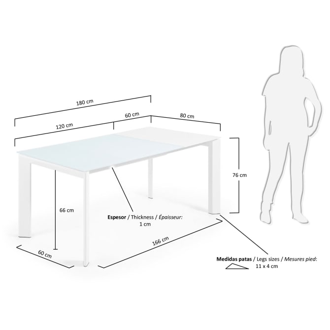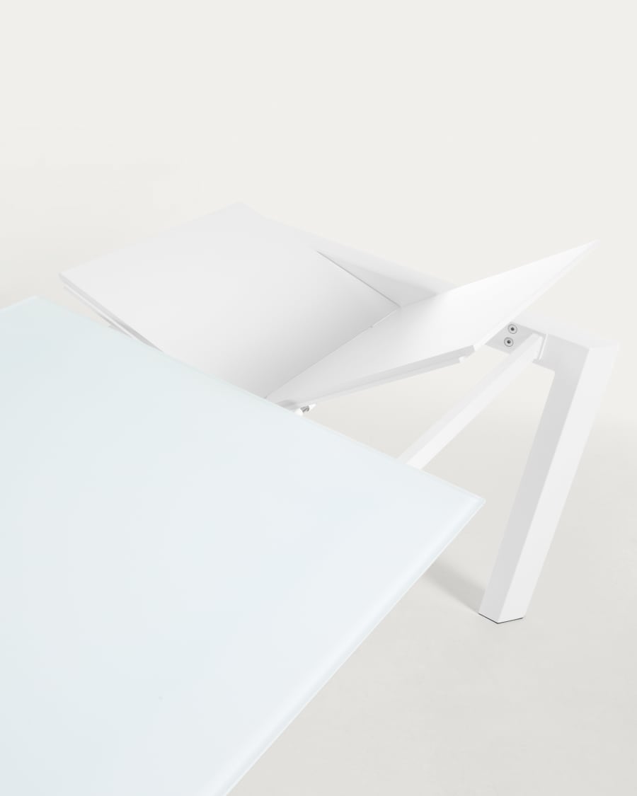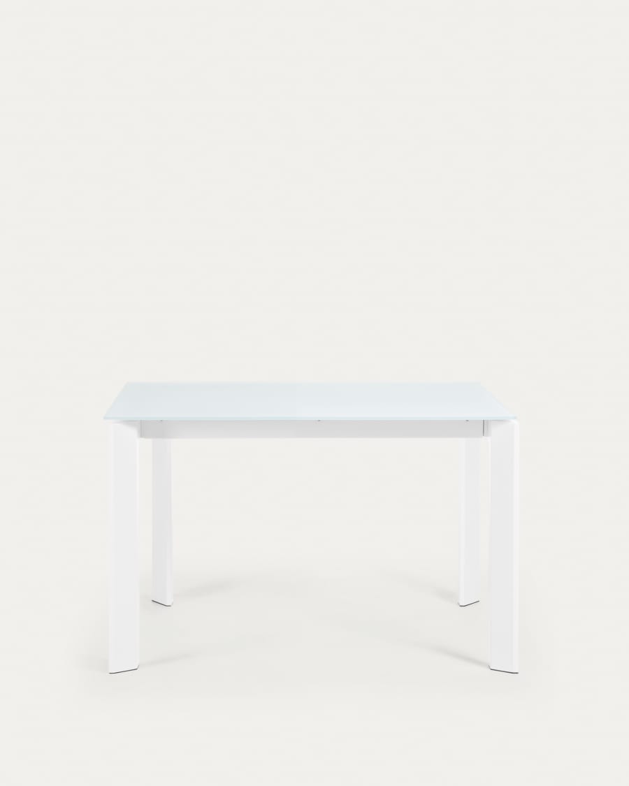 Tavolo allungabile Axis in vetro bianco e gambe in acciaio finitura bianca 120 (180) cm