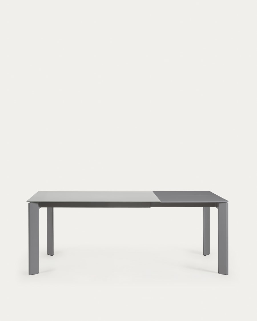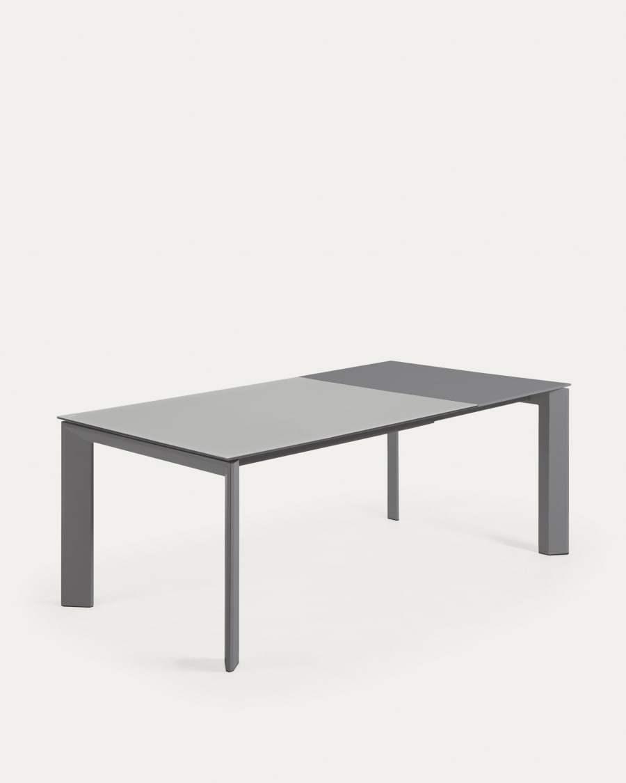Tavolo allungabile Axis in vetro grigio e gambe in acciaio finitura grigio scuro 140 (200) cm