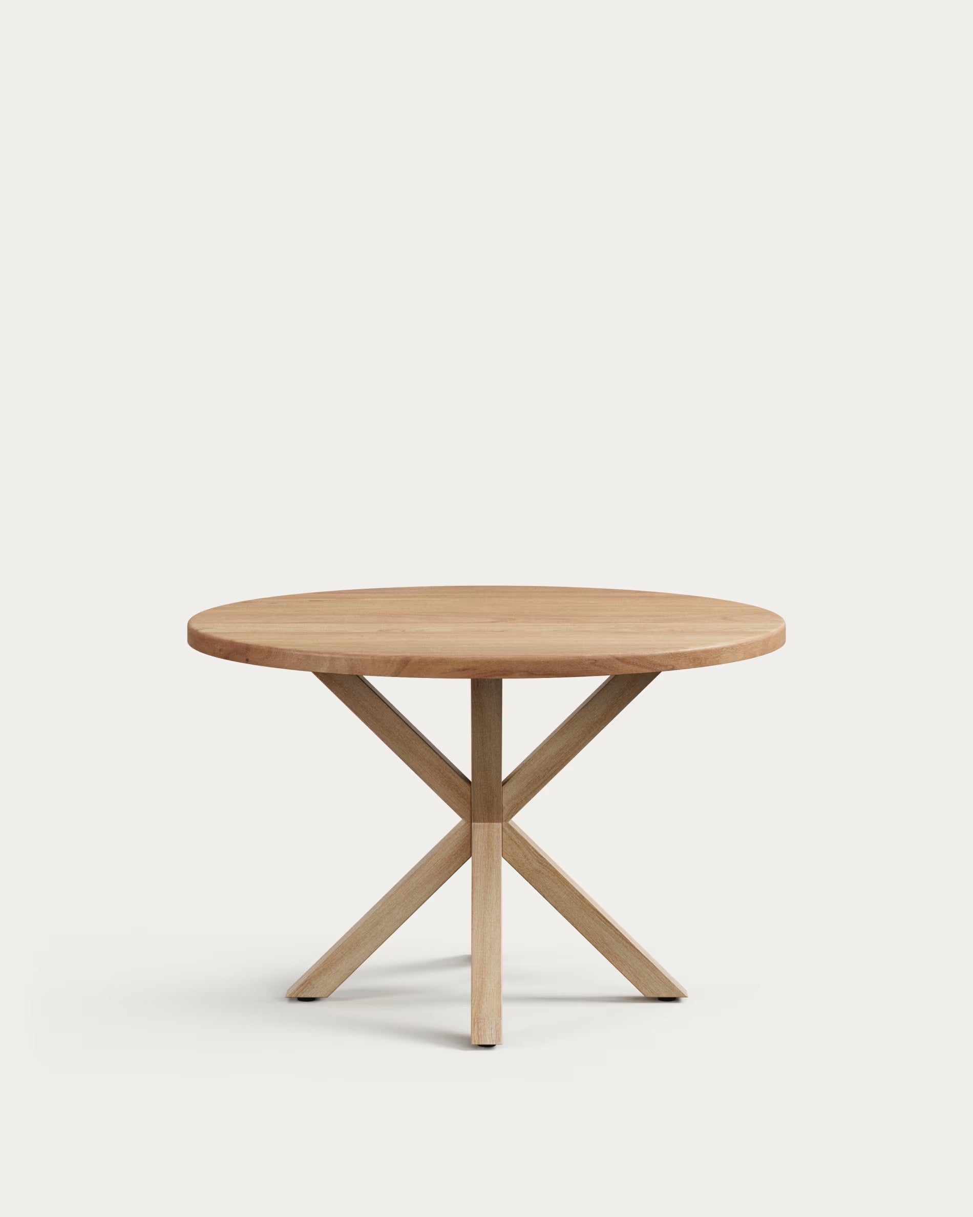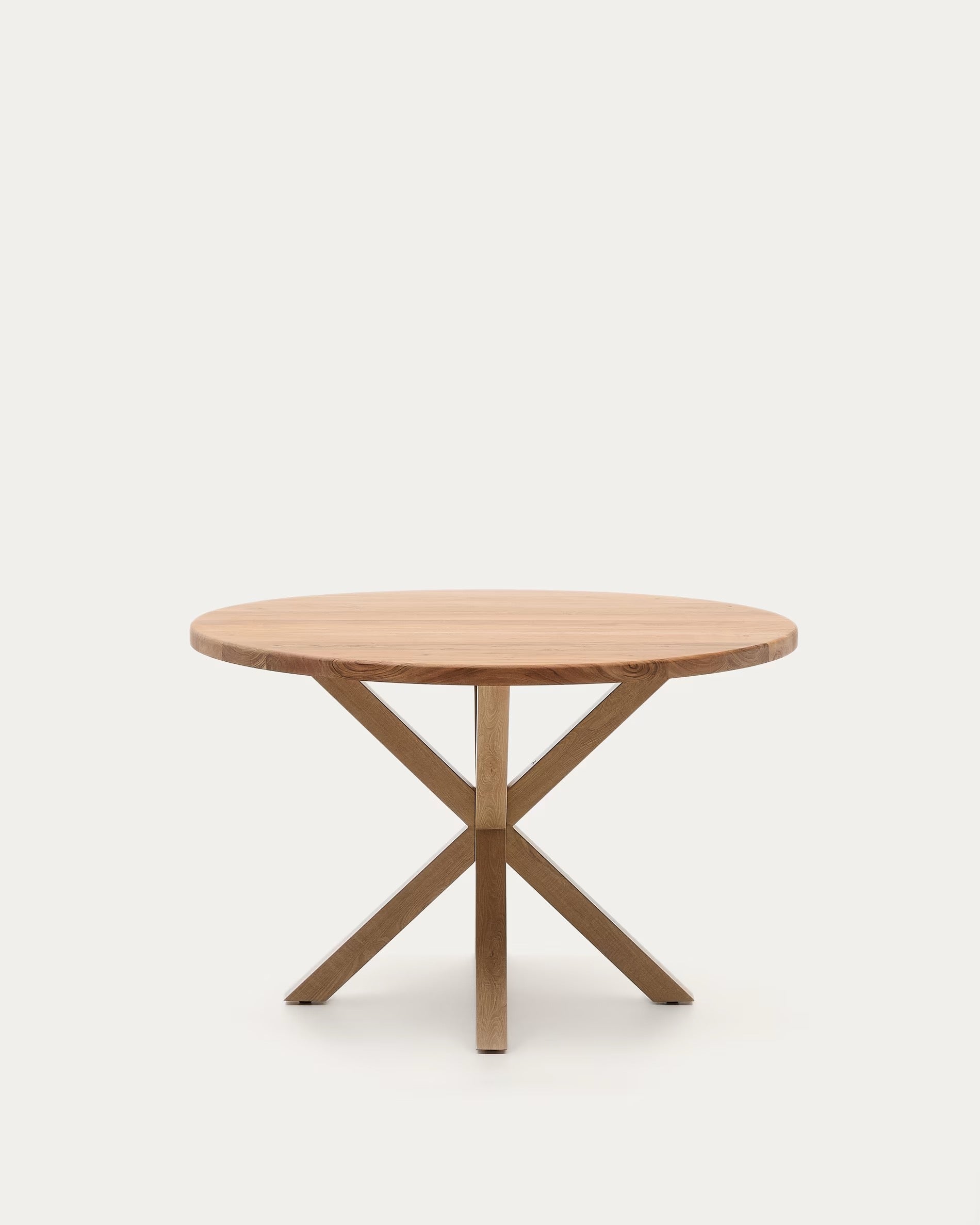 Tavolo rotondo Argo in legno massiccio di acacia con finitura naturale Ø 120 cm, gambe in acciaio con effetto legno