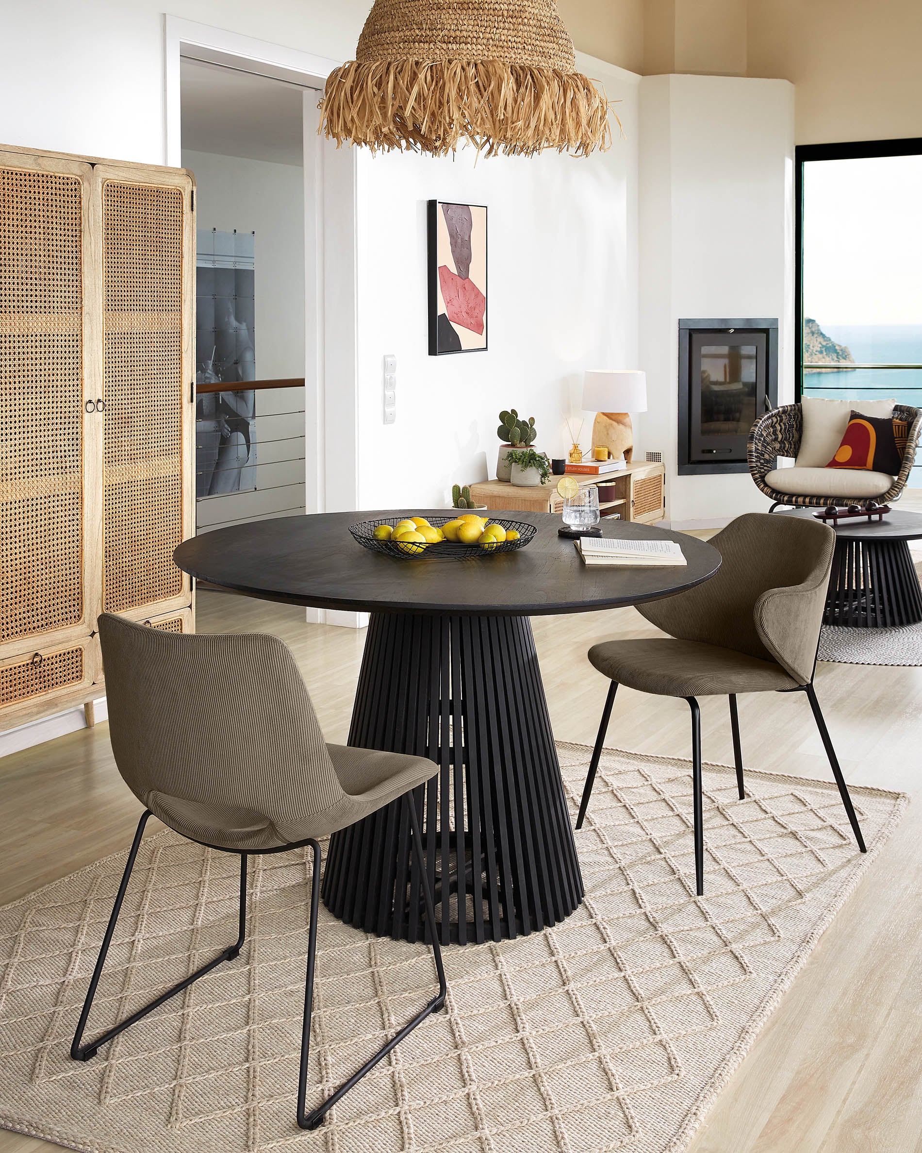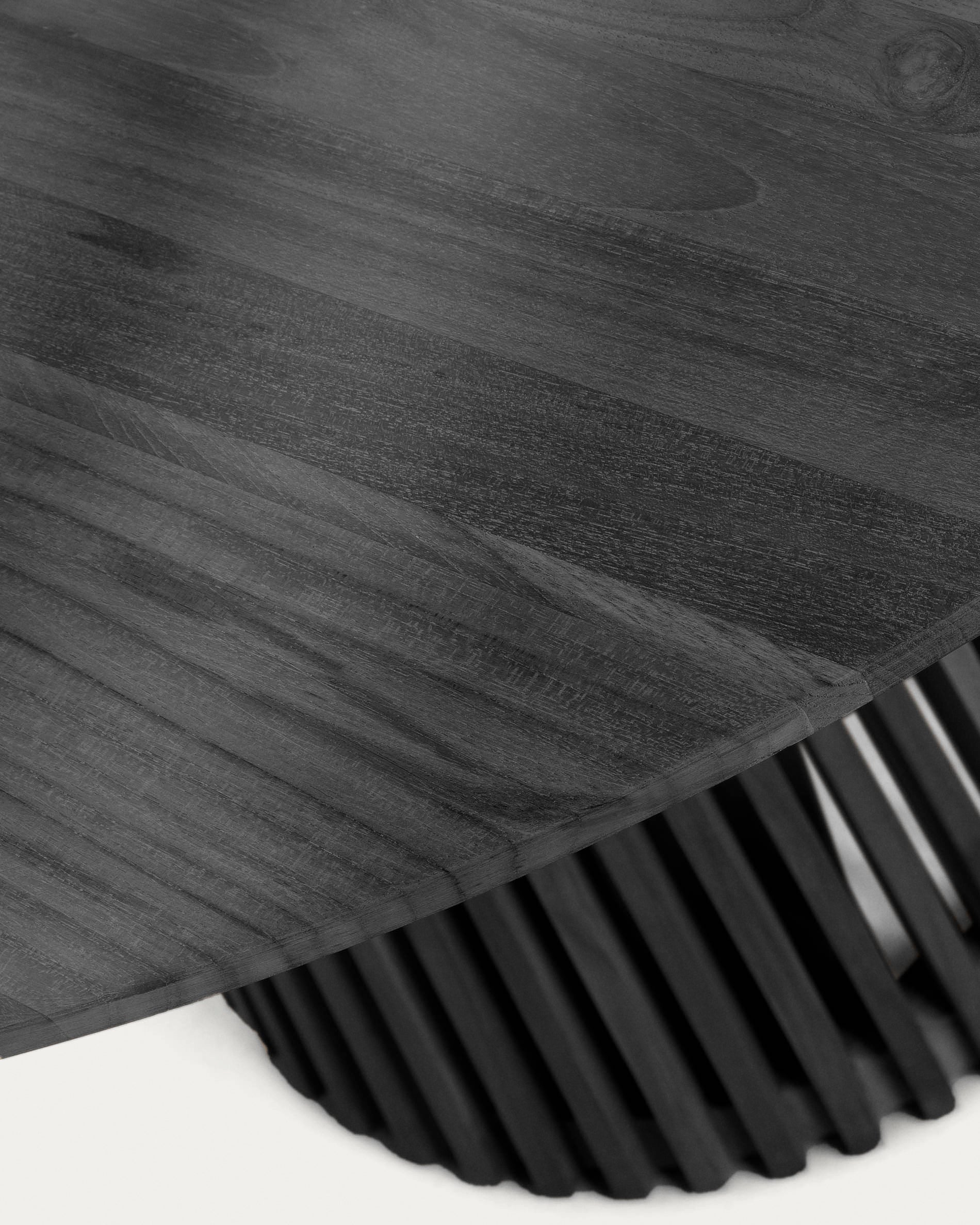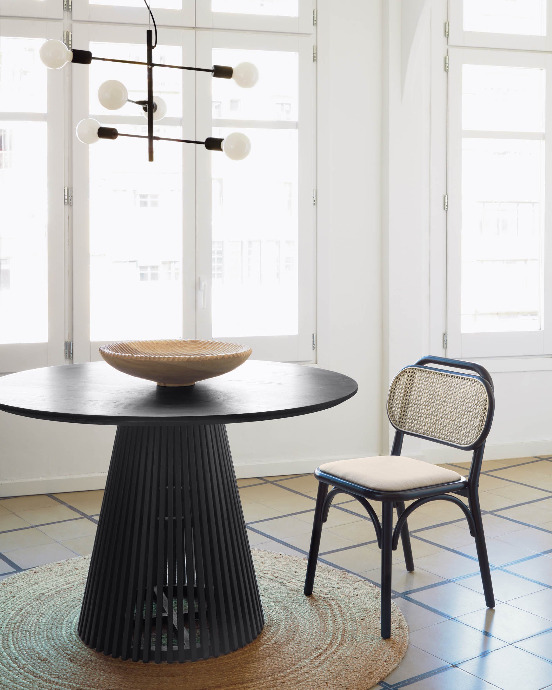 Dal design top, il tavolo Jeanette è realizzato in legno massello di mindi, con una finitura scura per adattarsi agli spazi più audaci. Inoltre, le venature del legno rimangono visibili per mantenere la sua autenticità ed esaltarne il carattere.
